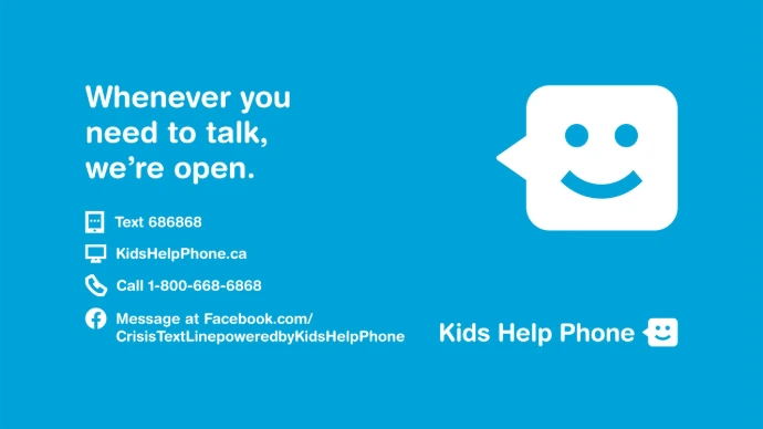 Confidential support for young people in Canada by call, text, or chat, available 24/7.